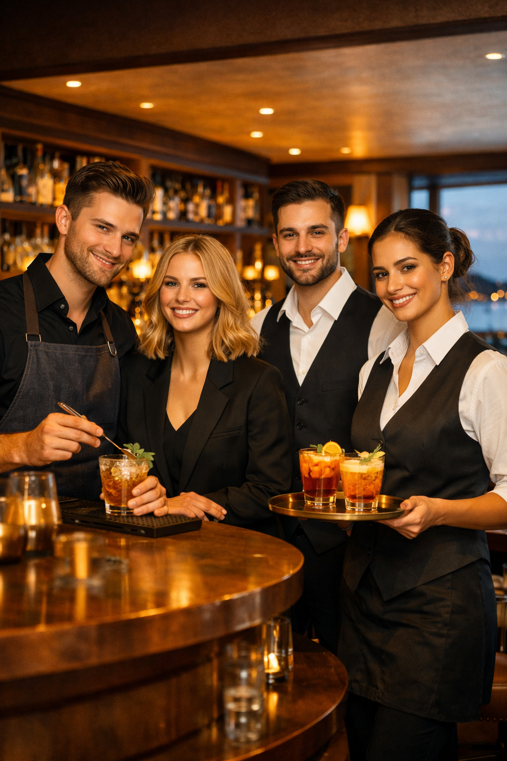 Weil wir ein Ort sind, an dem Professionalität und Persönlichkeit zusammenkommen. Wir bieten ein Umfeld, das inspiriert – mit klarer Struktur, moderner Mixology und einer Atmosphäre, in der man stolz sein kann, Teil des Teams zu sein.